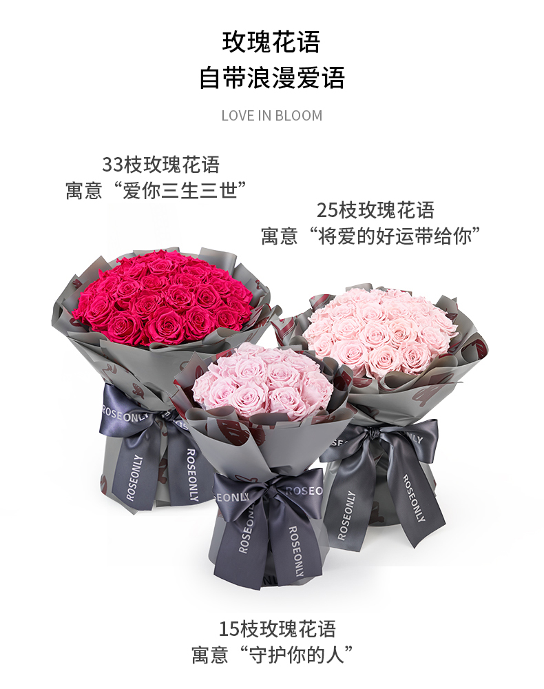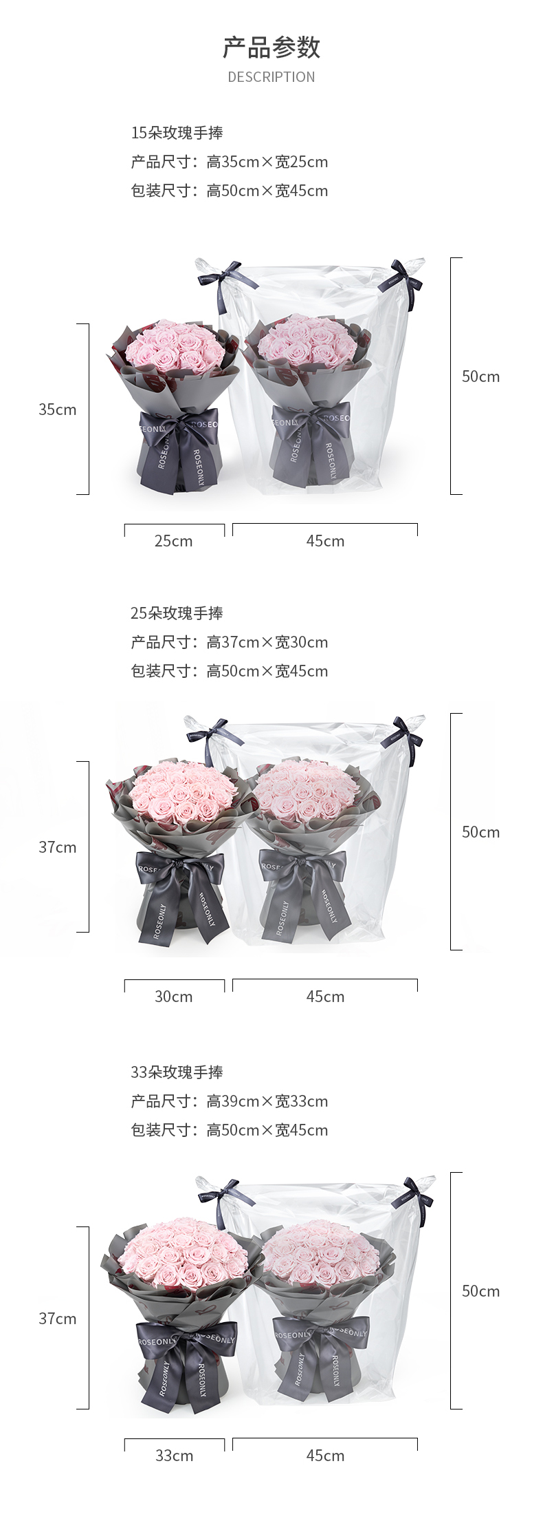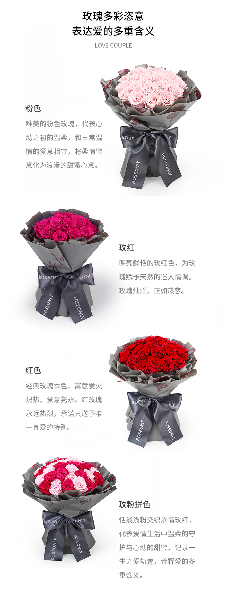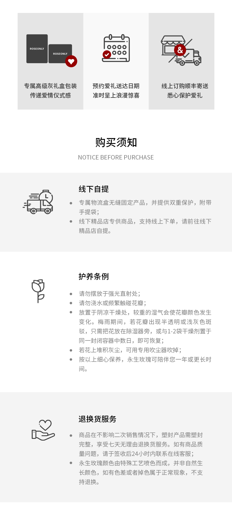 说明:永生玫瑰产品在自然因素影响下,会有些许变色,属于正常现象