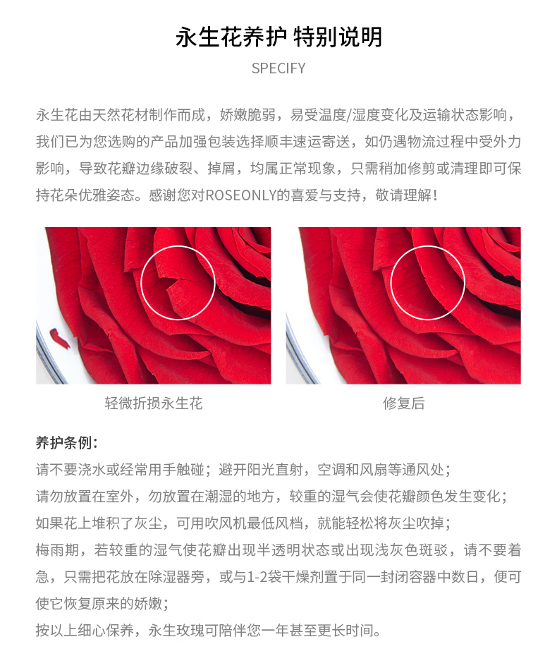 • 按以上细心保养,永生玫瑰可陪伴您一年或者更长时间。