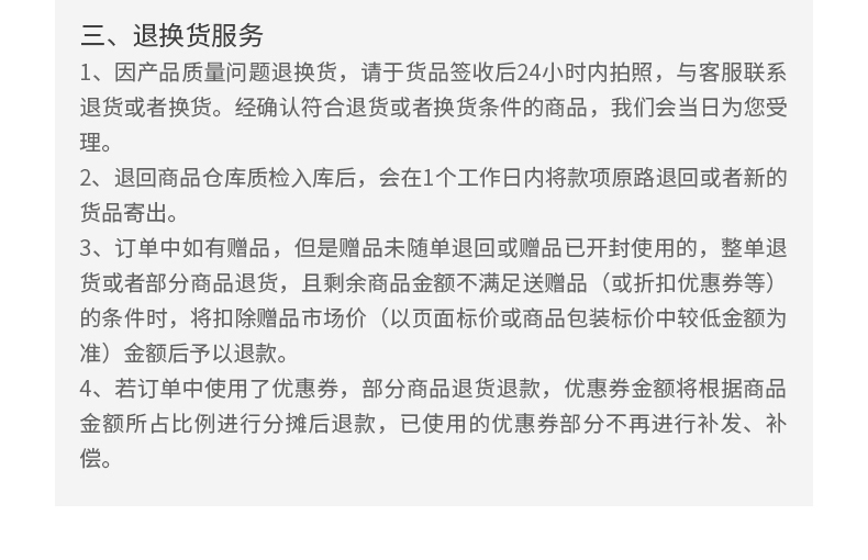退换货服务: