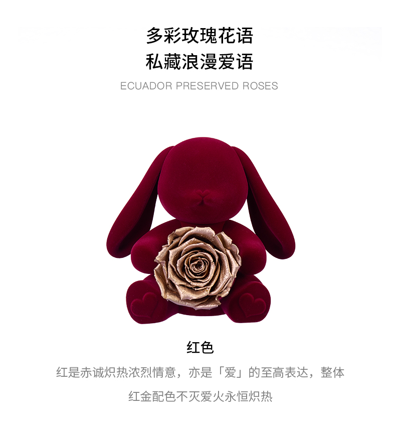 说明:永生玫瑰产品在自然因素影响下,会有些许变色,属于正常现象