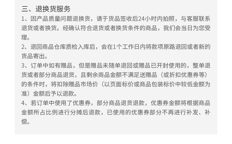退换货服务: