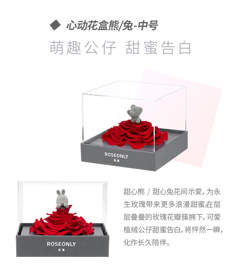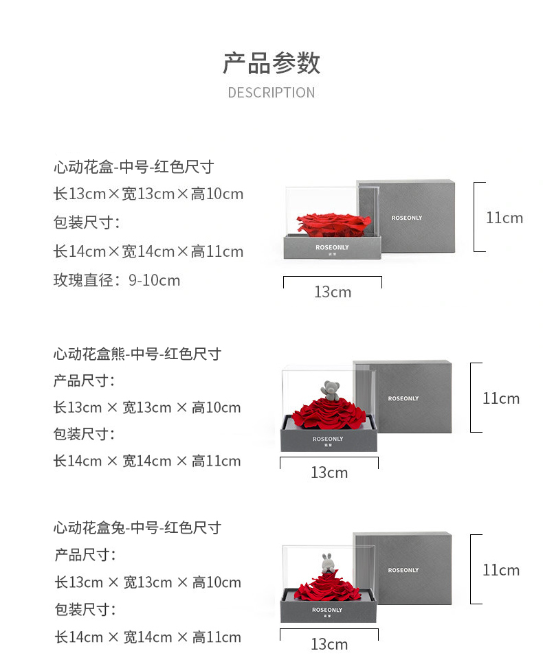 说明:永生玫瑰产品在自然因素影响下,会有些许变色,属于正常现象