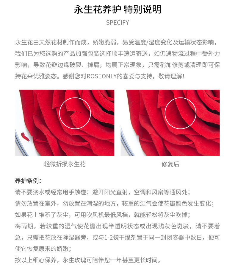 • 按以上细心保养,永生玫瑰可陪伴您一年或者更长时间。