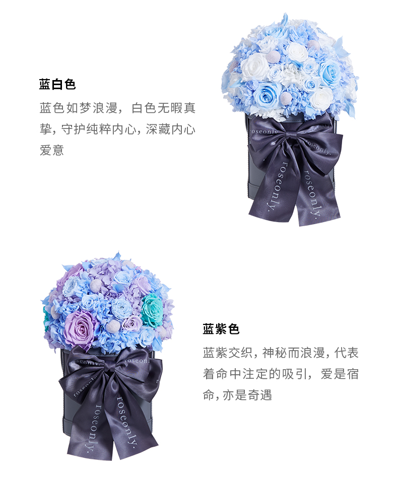 说明:永生玫瑰产品在自然因素影响下,会有些许变色,属于正常现象
