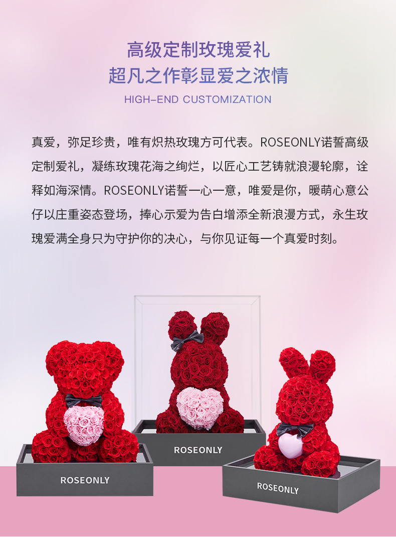 说明:永生玫瑰产品在自然因素影响下,会有些许变色,属于正常现象
