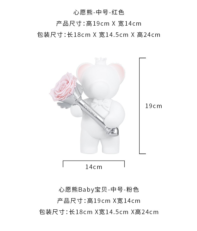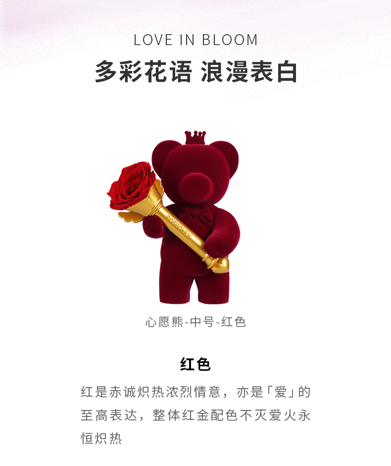 说明:永生玫瑰产品在自然因素影响下,会有些许变色,属于正常现象