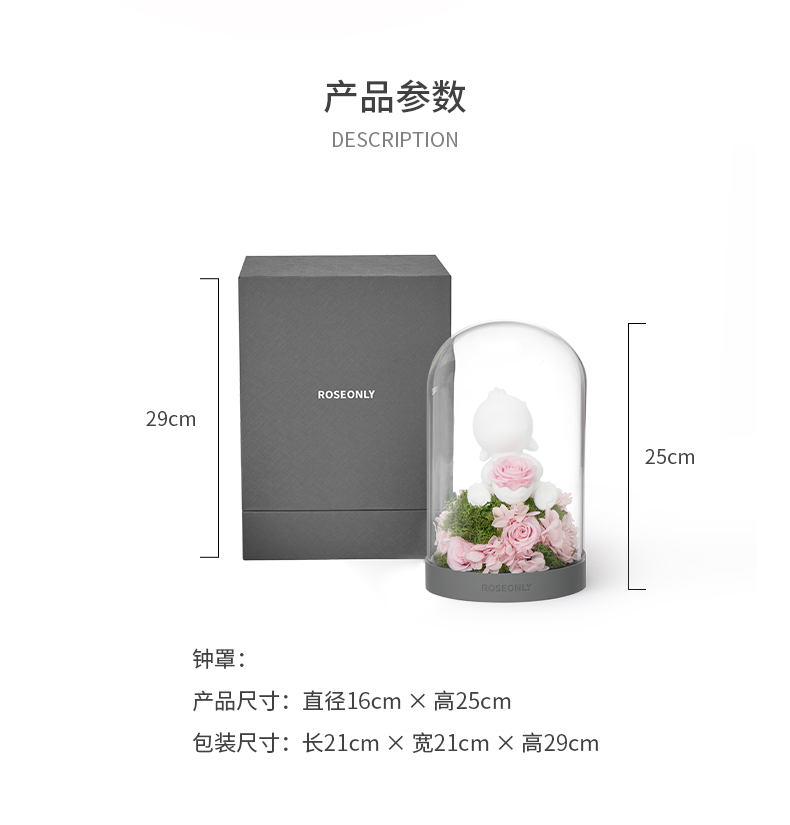 说明:永生玫瑰产品在自然因素影响下,会有些许变色,属于正常现象