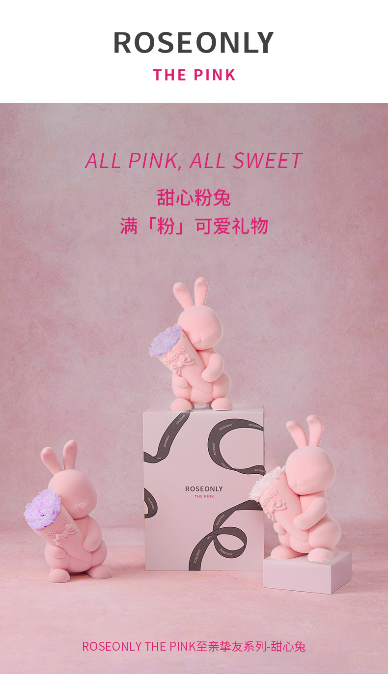 恒久守护版甜心兔-中号-粉色康乃馨