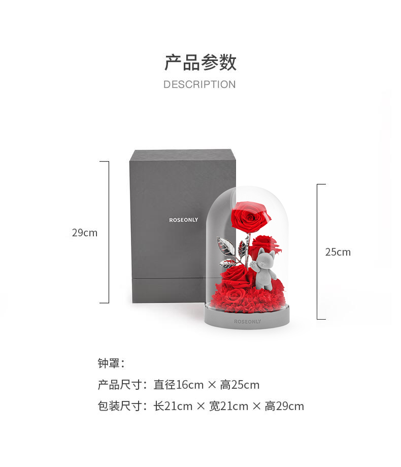 说明:永生玫瑰产品在自然因素影响下,会有些许变色,属于正常现象