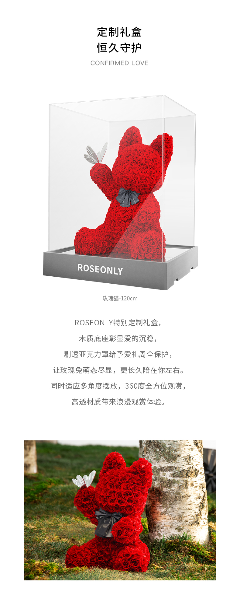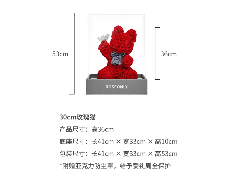 说明:永生玫瑰产品在自然因素影响下,会有些许变色,属于正常现象