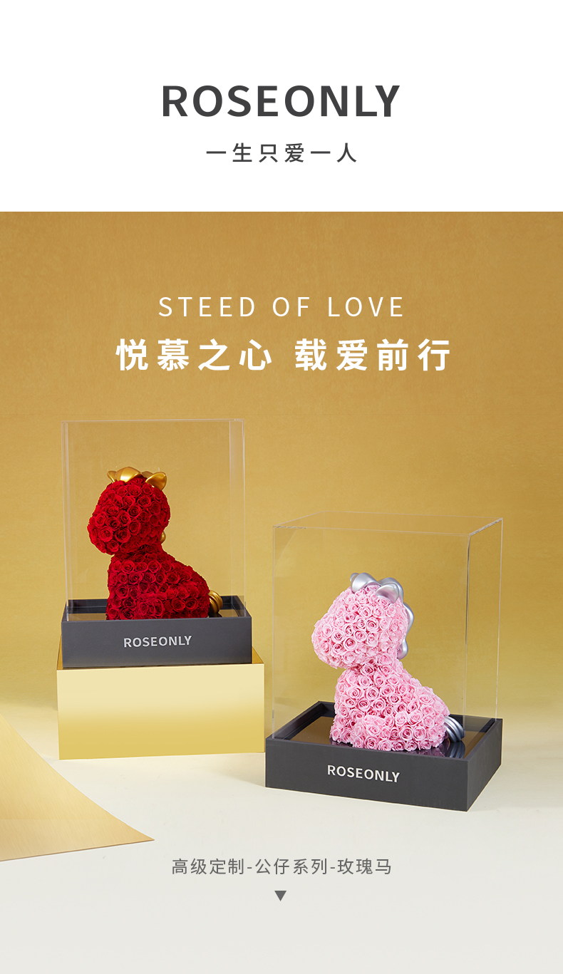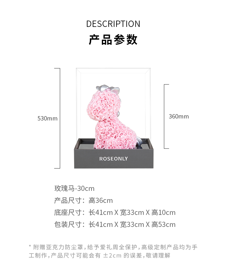 说明:永生玫瑰产品在自然因素影响下,会有些许变色,属于正常现象