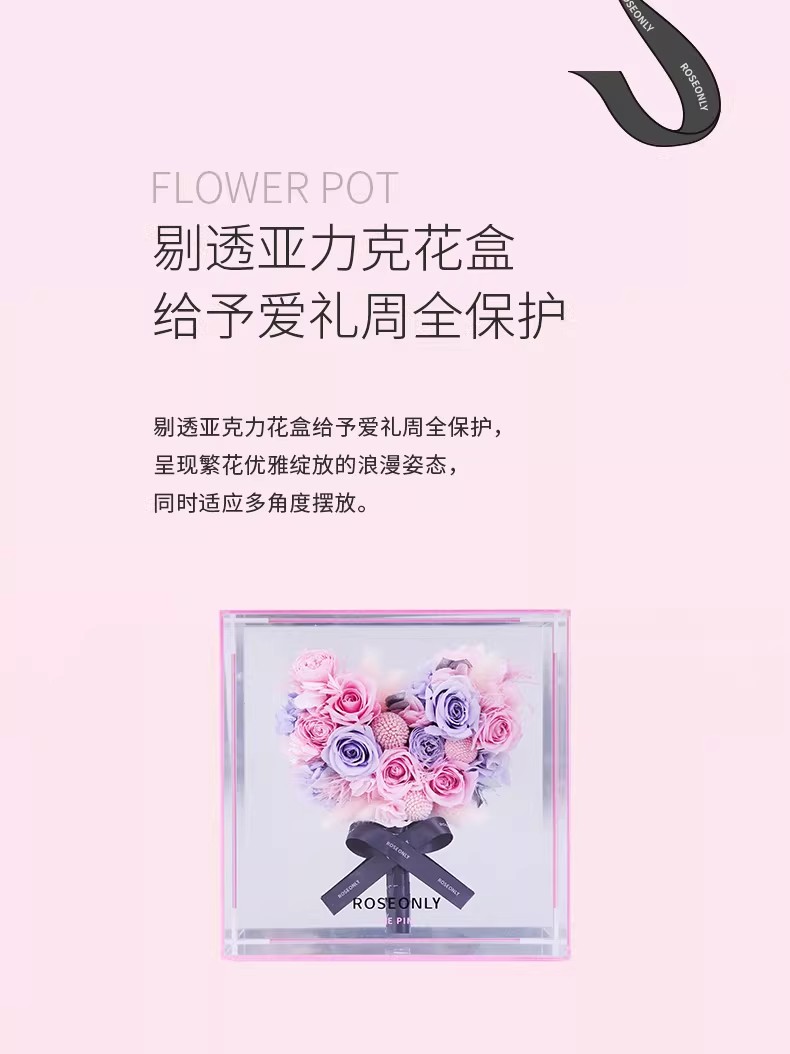 说明:永生玫瑰产品在自然因素影响下,会有些许变色,属于正常现象